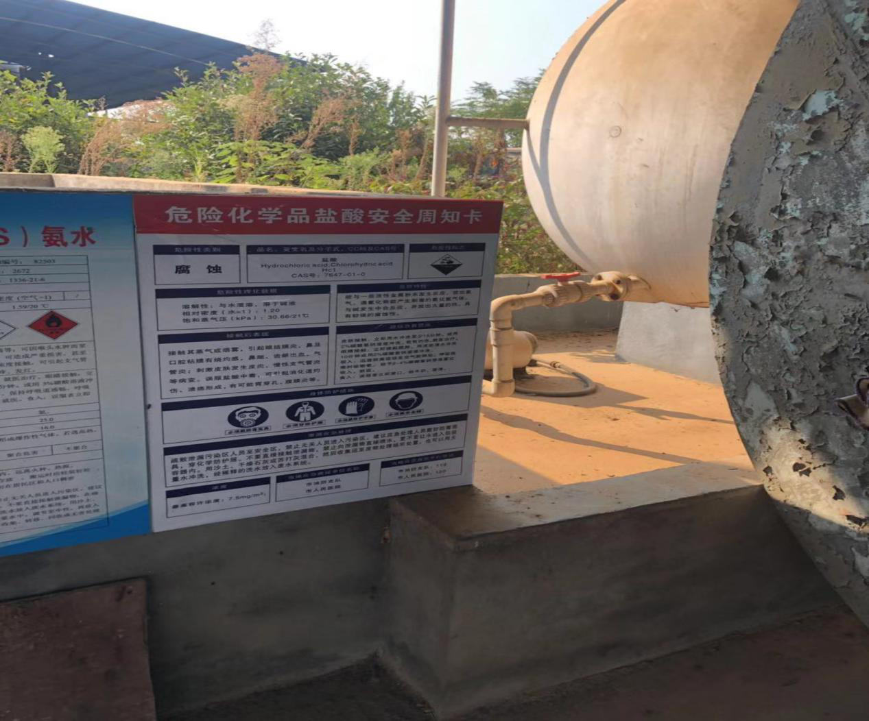 鹽酸儲罐玻璃管無保護套,不能防腐蝕。無鹽酸安全周知卡